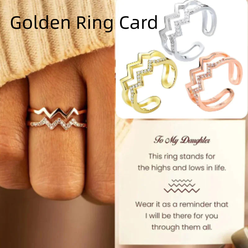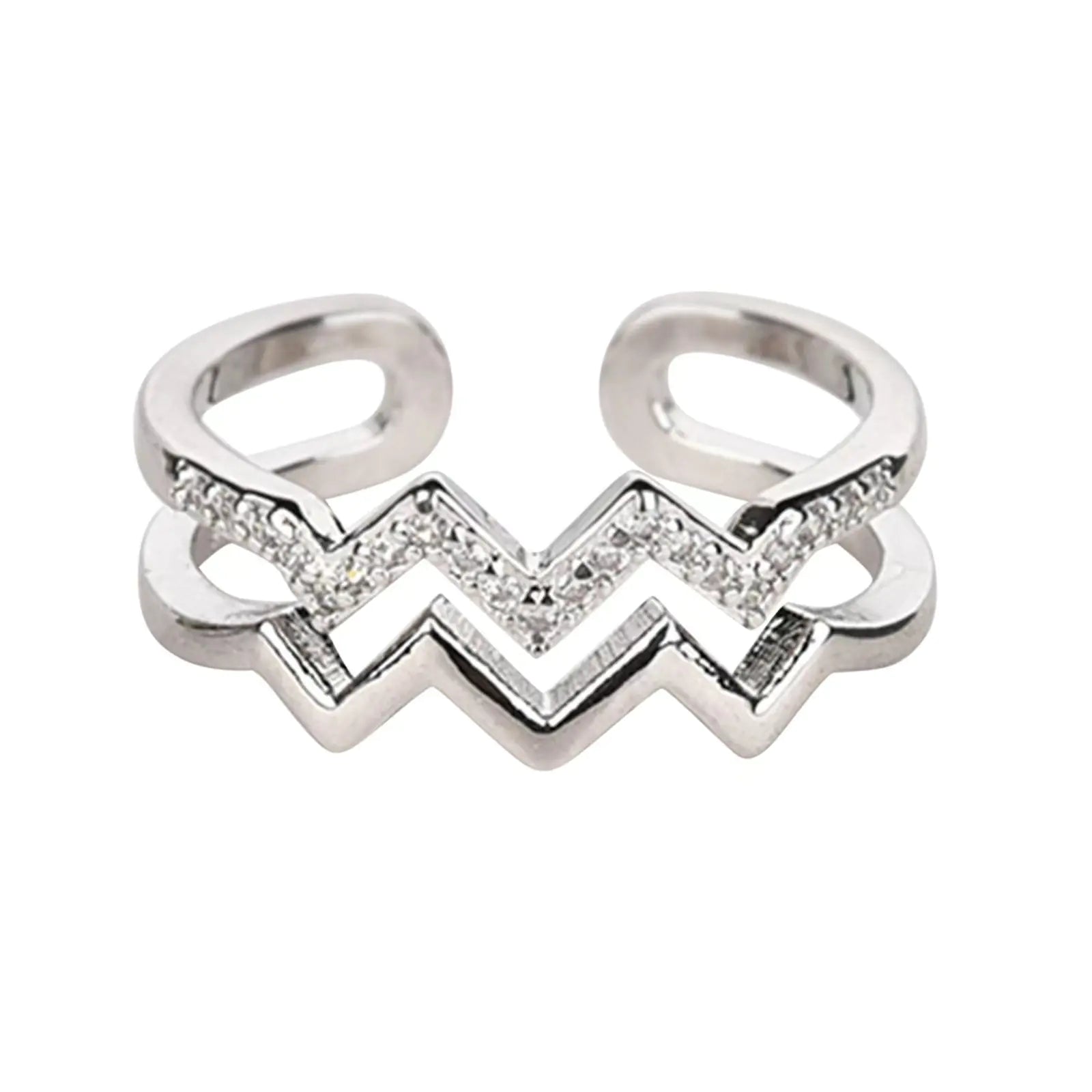 Double-layer Diamond-embedded Heart Wave Line Ring Elegant Design of the Ring Different Color Variations Close-up of Heart Wave Design Stylish Copper Material Adjustable Opening Feature Perfect for Gifting