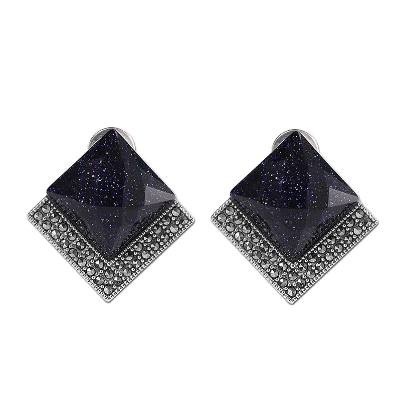 Thai Silver Earrings Blue Sandstone Inlay Elegant Design Versatile Accessory Stylish Earrings